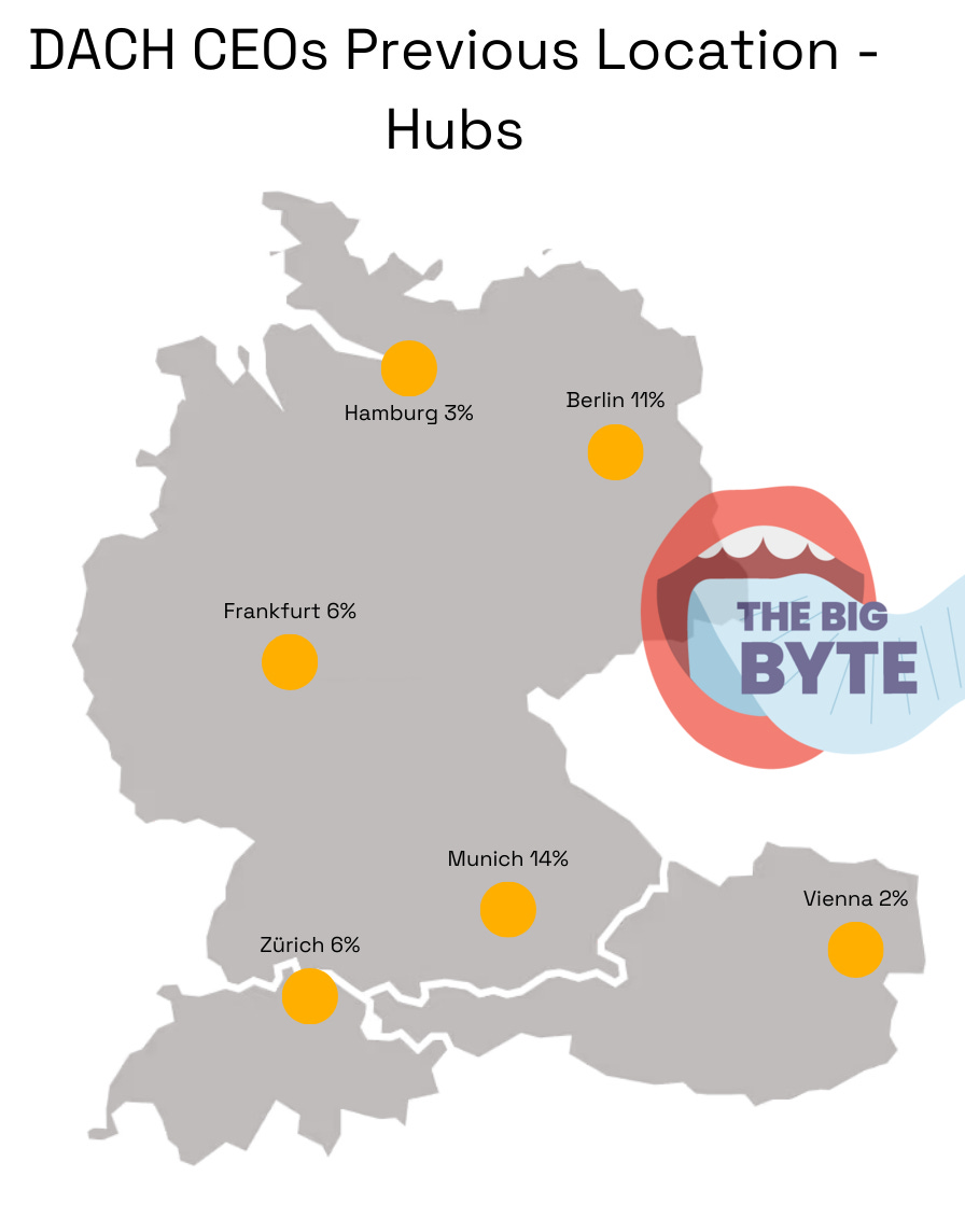 Berlin and Munich stand out, accounting for 25% of the total CEOs' prior workplaces.